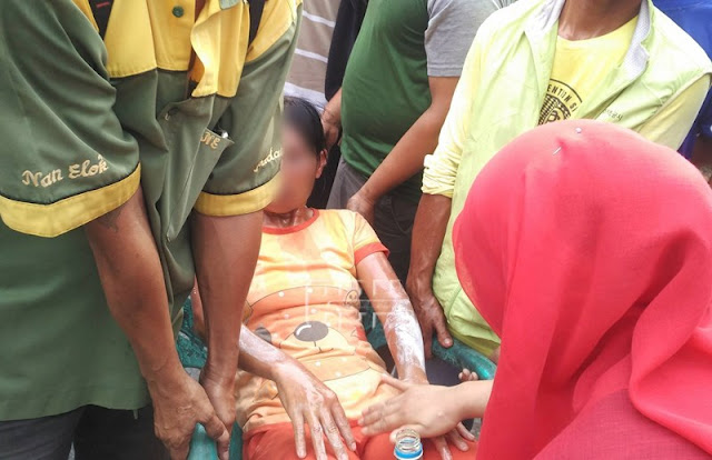 Saat ini, Erna yang mengalami luka bakar langsung dibawa ke rumah sakit. Meski mengalami luka bakar yang cukup parah, Erna masih dalam kondisi sadar namun ia merintih kesakitan. Masyarakat setempat pun melakukan pengobatan sementara terhadap luka bakar tersebut, dengan mengoleskan pasta gigi dan sejenis minyak.