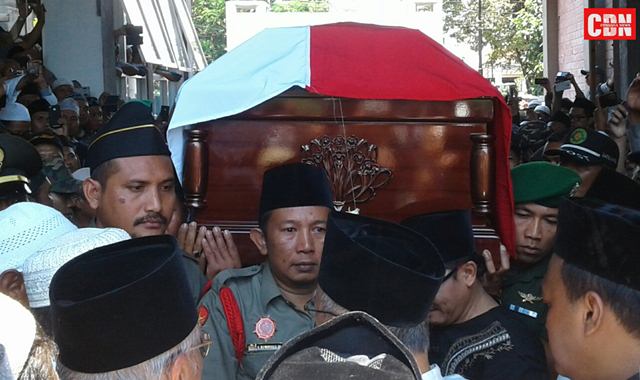 | Jenazah KH. Achmad Hasyim Muzadi ketika akan diberangkatkan ke Depok. |