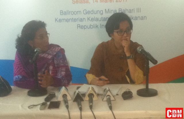 | Menteri Keuangan, Sri Mulyani Indrawati (kanan) serta Menteri Kelautan dan Perikanan, Susi Pudjiastuti (kiri). |