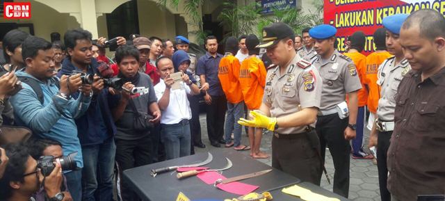 Mayoritas pelaku diketahui masih berusia di bawah umur dan berstatus pelajar sekolah, baik SMA maupun SMP. Empat bilah senjata tajam berupa celurit yang digunakan untuk membacok serta parang, termasuk tiga buah kendaraan bermotor, ikut diamankan sebagai barang bukti. Dua orang pelaku lainnya diketahui masih buron dan dalam proses pengejaran.