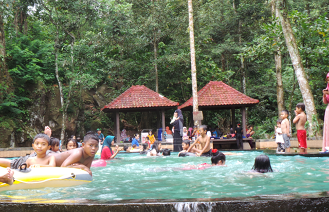 Lokasi yang dekat dari pintu masuk kawasan wisata dan tidak menguras tenaga, menjadi alasan sebagian wisatawan memilih kolam pemandian sebagai tempat mandi daripada mandi di sungai bagian dalam kawasan hutan, yang selain harus berjalan jauh, juga cukup berbahaya bagi anak. “Kalau mandi di sungai kan sangat berbahaya, karena penuh dengan bebatuan yang sudah berlumut dan licin, makanya banyak wisatawan termasuk anak-anak memilih mandi di kolam pemandian yang lebih aman ini,” katanya.