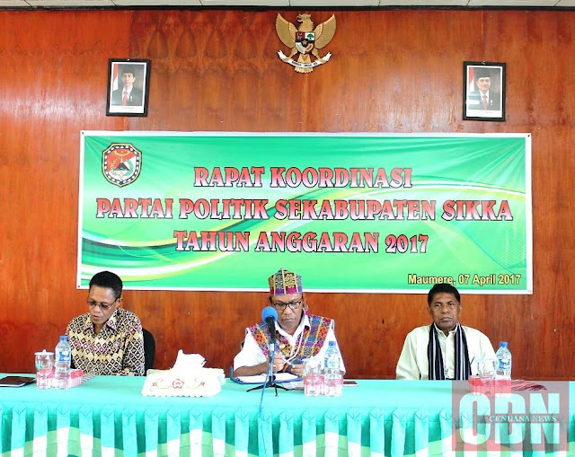 Demikian disampaikan Bupati Sikka Drs.Yoseph Ansar Rera saat membuka resmi Rapat Koordinasi Partai Politik Tahun Anggaran 2017 di aula Kantor Bupati Sikka,Maumere, Jumat (7/4/2017).
