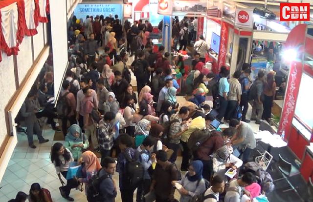 Ribuan pencari kerja terlihat banyak yang berjubel dan antre untuk mendaftarkan pekerjaan dalam Job Fair 2017 kali ini. Mereka yang datang rata-rata mahasiswa yang baru saja lulus, baik dari wilayah Solo maupun Semarang dan Yogyakarta. Tak sedikit dari pengunjung baru coba-coba melamar pekerjaan setelah lulus kuliah. “Coba-coba saja, siapa tahu ada yang cocok dengan lulusan saya,” kata Oka, pengunjung dari Ungaran.
