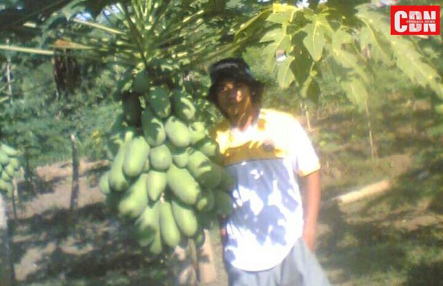 | Mohamad Ibnu Kharisma dan kebun pepaya miliknya. |