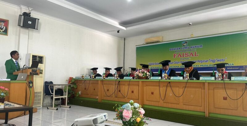 Bersama penguji lainnya antara lain Prof. Dr. H. Sufirman Rahman, SH, MΗ, di mana selain sebagai penguji beliau juga Rektor UMI Makassar. Sidang promosi doktor hukum dipimpin Prof. Dr. Mursalim Laekkeng, ASEAN CPА yang merupakan Direktur Pasca FH UMI.