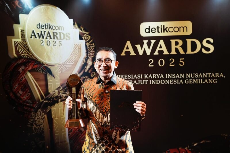 Jakarta, 26 November 2025 — Menteri Kebudayaan RI, Fadli Zon, menerima penghargaan Tokoh Penggerak Ekosistem Pelindungan Kebudayaan pada ajang detikcom Awards 2025 yang diselenggarakan di The Westin Jakarta, Selasa (25/11).