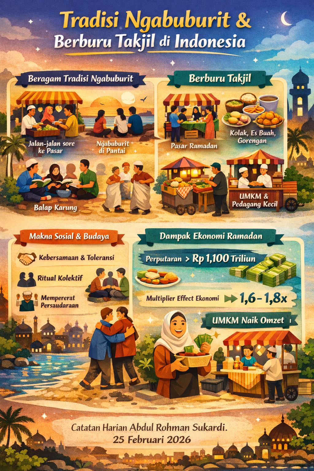 Tradisi ngabuburit dan berburu takjil bukan sekadar kebiasaan musiman. Ia adalah simpul antara iman, budaya, dan ekonomi.