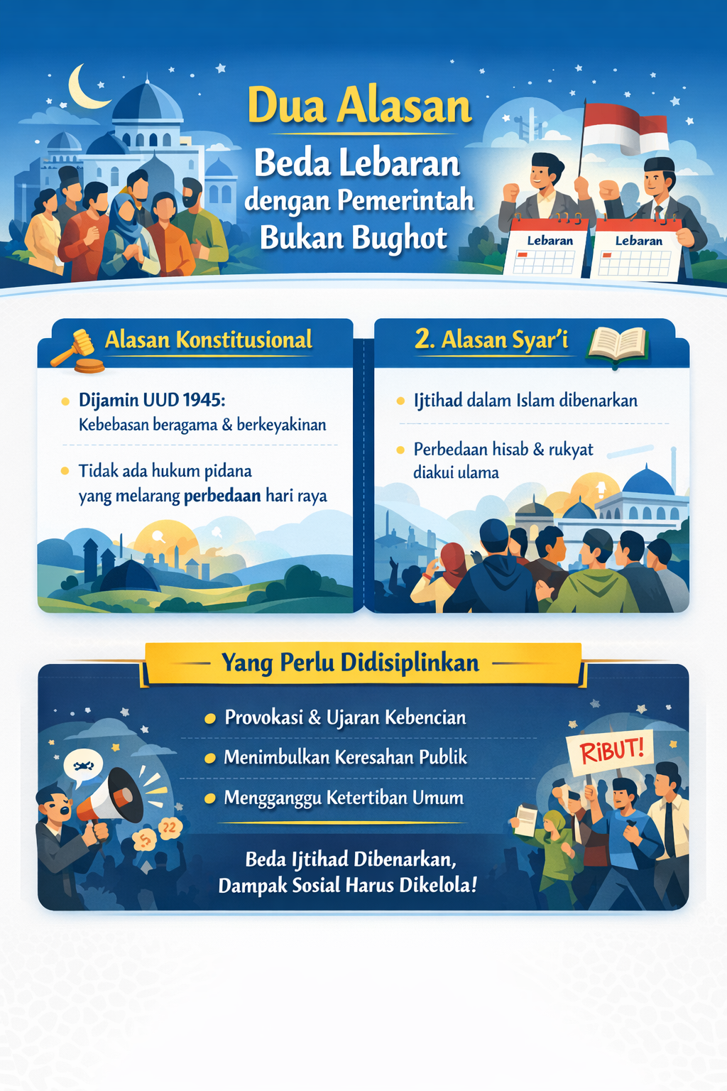 Prinsipnya jelas: menjaga ketertiban dan persatuan adalah kewajiban bersama. Tanpa harus meniadakan ruang ijtihad.