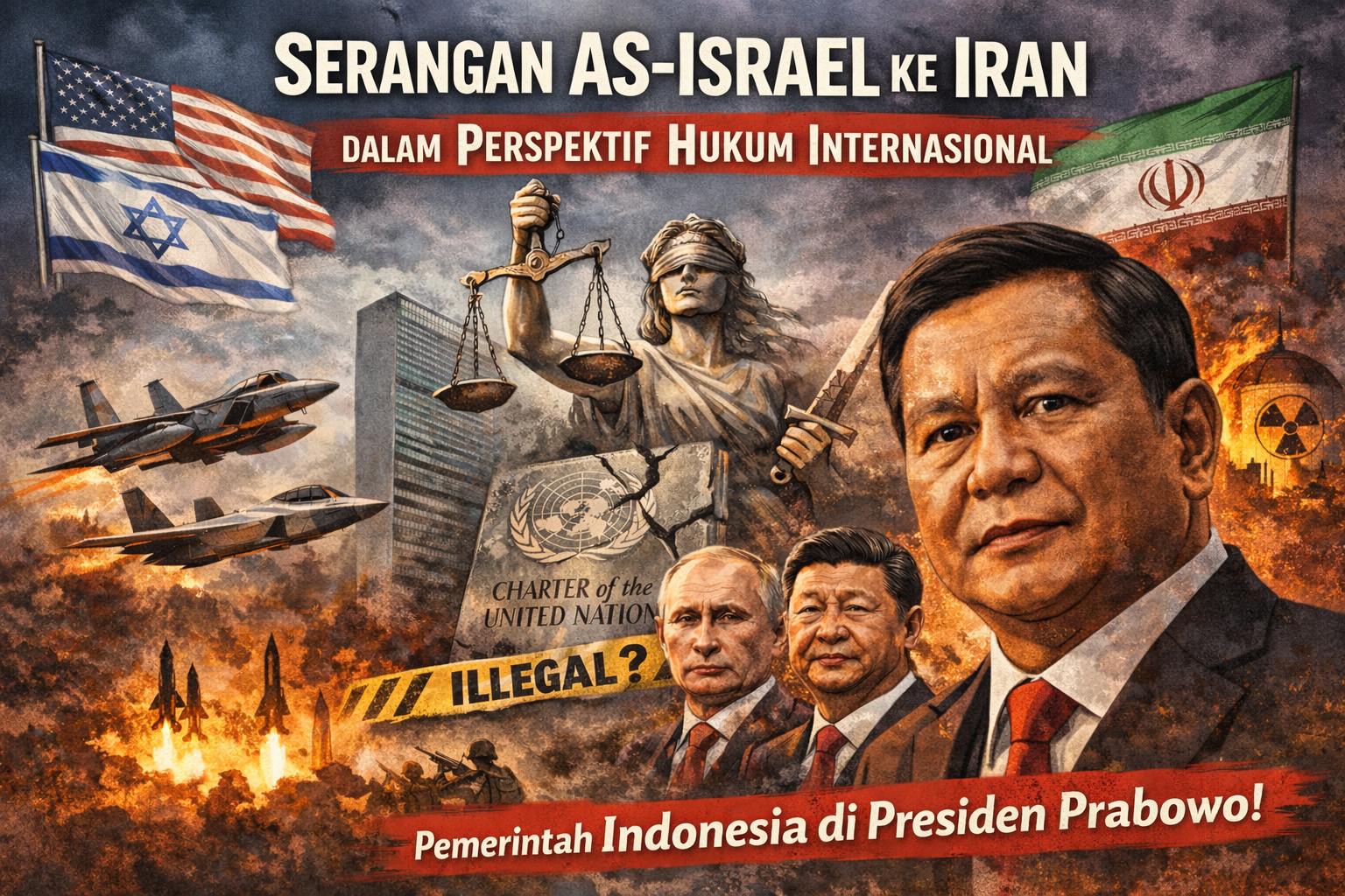 Serangan militer Amerika Serikat (AS) dan Israel terhadap Iran akhir Februari 2026 menimbulkan ketegangan serius dalam hukum internasional. Pemerintah Washington dan Tel Aviv membenarkan aksinya sebagai pre‑emptive strike. Mencegah kemungkinan ancaman nuklir di masa depan.
