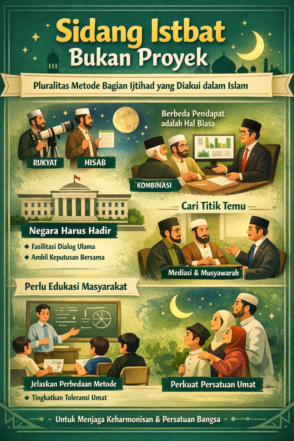 Karena itu, menyederhanakan sidang isbat sebagai “proyek” jelas tidak adil. Ia bukan sekadar forum seremonial. Ia merupakan ruang deliberasi yang mempertemukan berbagai pandangan, sekaligus menghasilkan keputusan yang dibutuhkan dalam skala nasional.