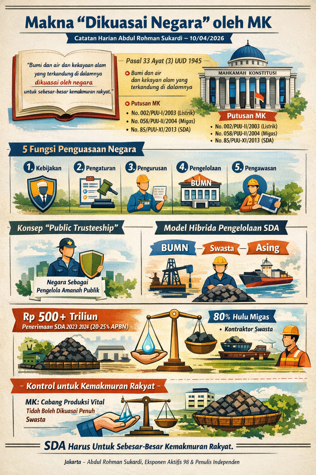 Penguasaan negara adalah mandat konstitusional untuk memastikan kekayaan alam benar-benar kembali pada rakyat. Sebagai pemilik kedaulatan tertinggi.